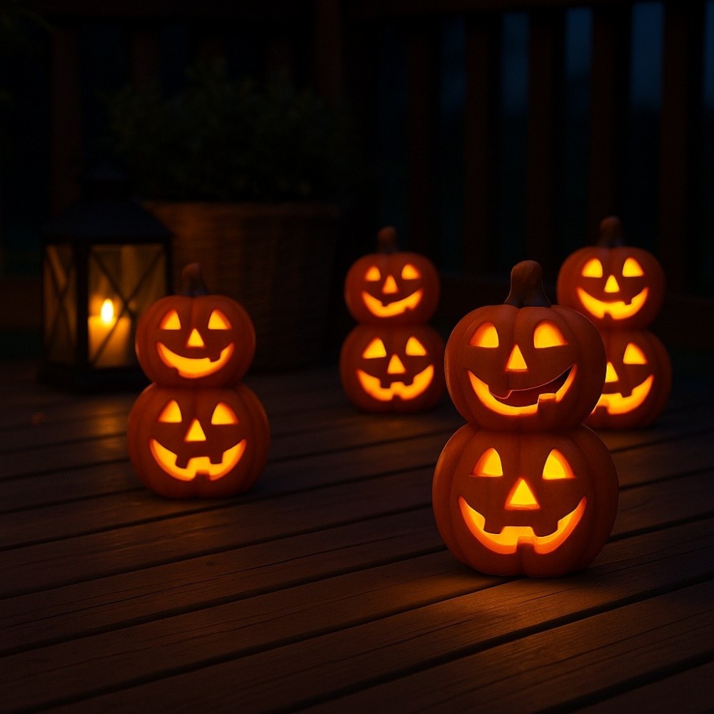 Originální keramická dekorace ve tvaru dvou na sobě posazených dýní s vyřezanými obličeji navodí tu pravou halloweenskou atmosféru. Díky integrovanému LED světlu vydává příjemný svit, který krásně vynikne v interiéru i na slavnostně prostřeném stole.