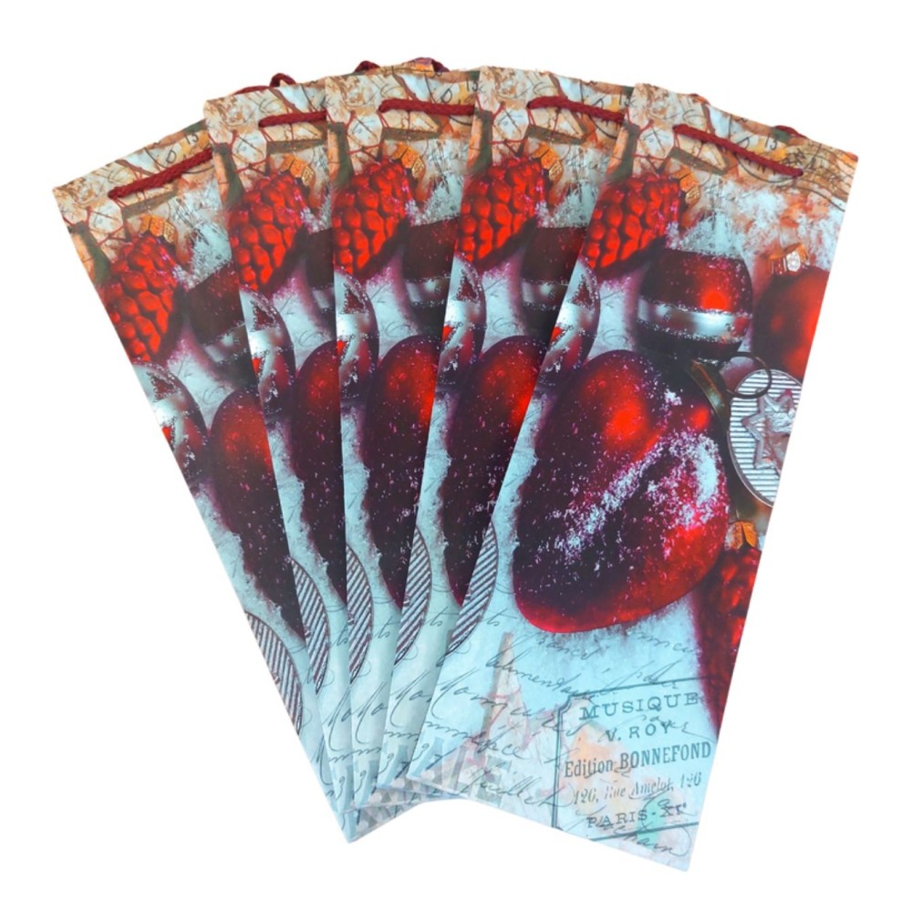 5ks dárkových tašek na láhev - Červené ozdoby 8611308