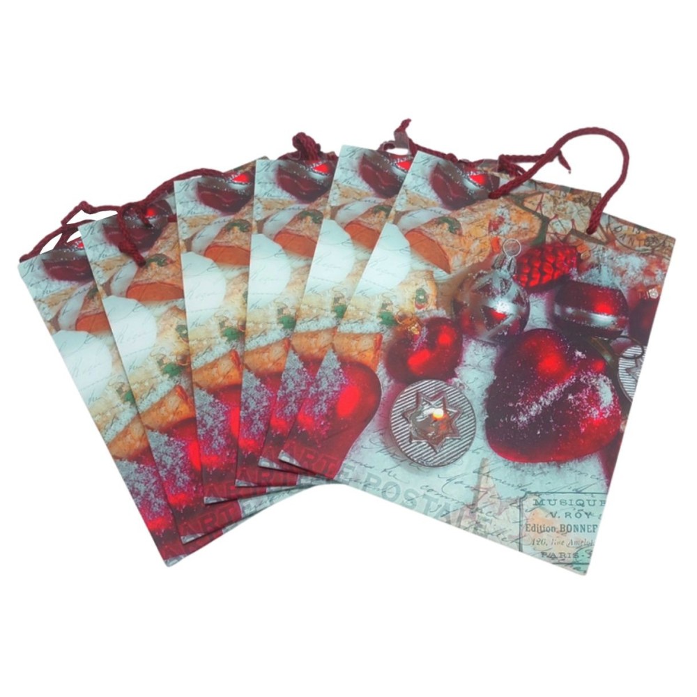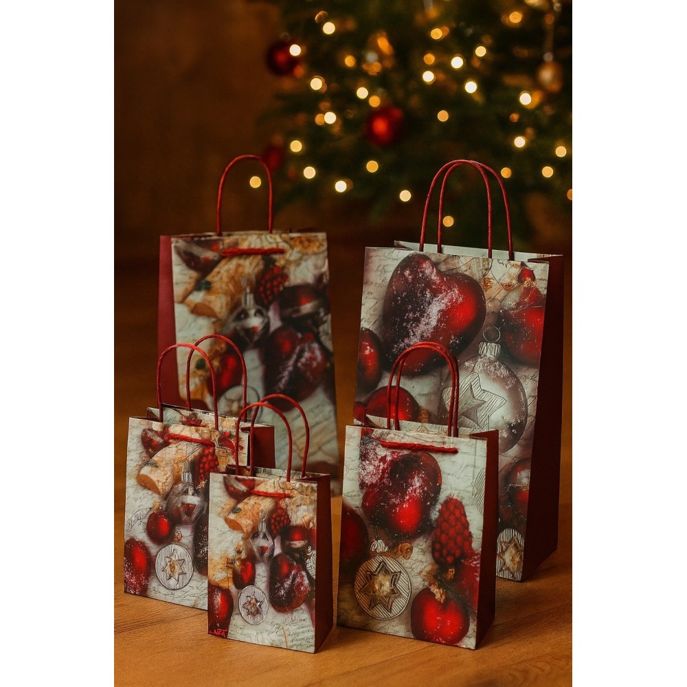 6ks dárkových tašek M - Červené ozdoby 8610106