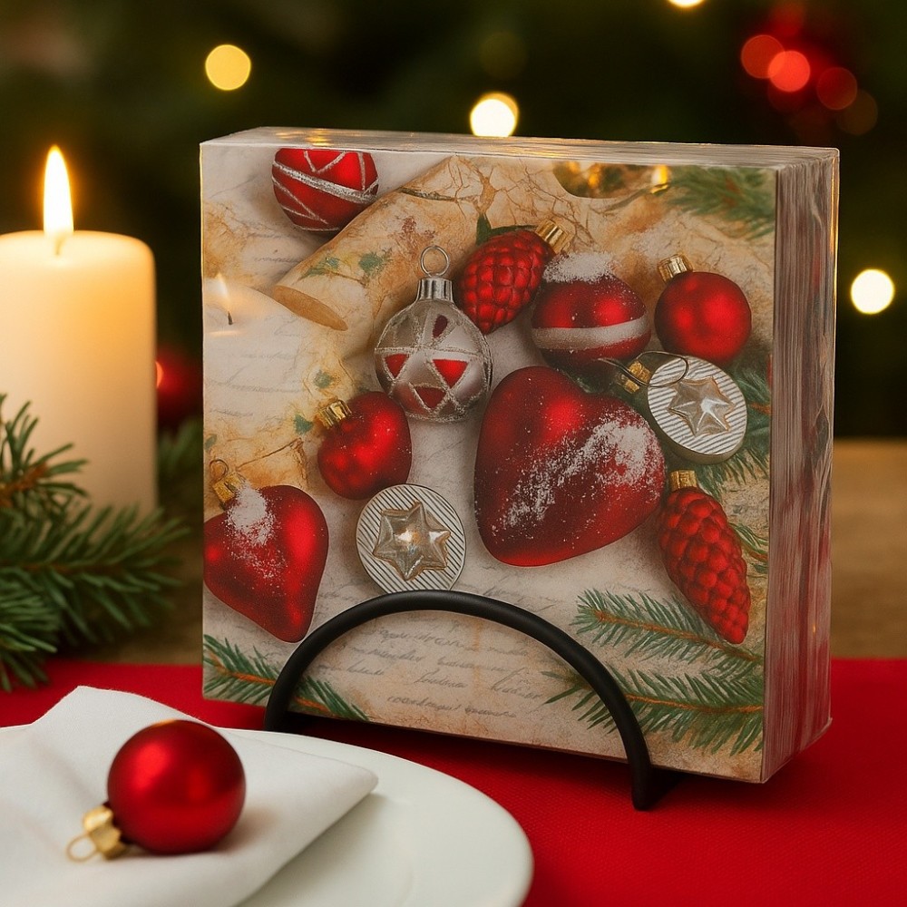 Vánoční ubrousky Červené ozdoby 3-vrstvé 3500031
