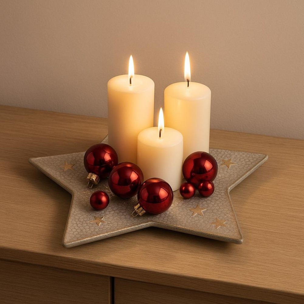 Originální tác ve tvaru hvězdy v bílo-zlatém designu dodá vašemu domovu kouzelnou sváteční atmosféru. Díky jemnému třpytivému povrchu a zlatým hvězdičkám je ideální jako podklad pod svíčky, vánoční koule či jiné dekorace. Skvěle se hodí na slavnostní tabuli, komodu nebo parapet.