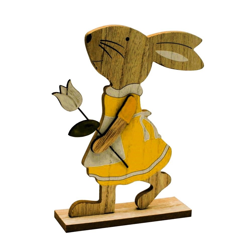Zajíček v šatičkách dřevěný žlutý 24cm 4000075