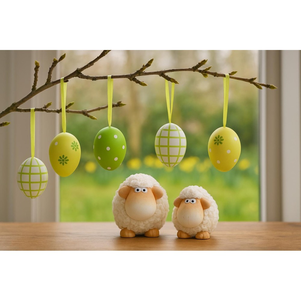 Sada velikonočních vajíček – zeleno-bílo-žlutá, 6 × 4 cm, 6 ks