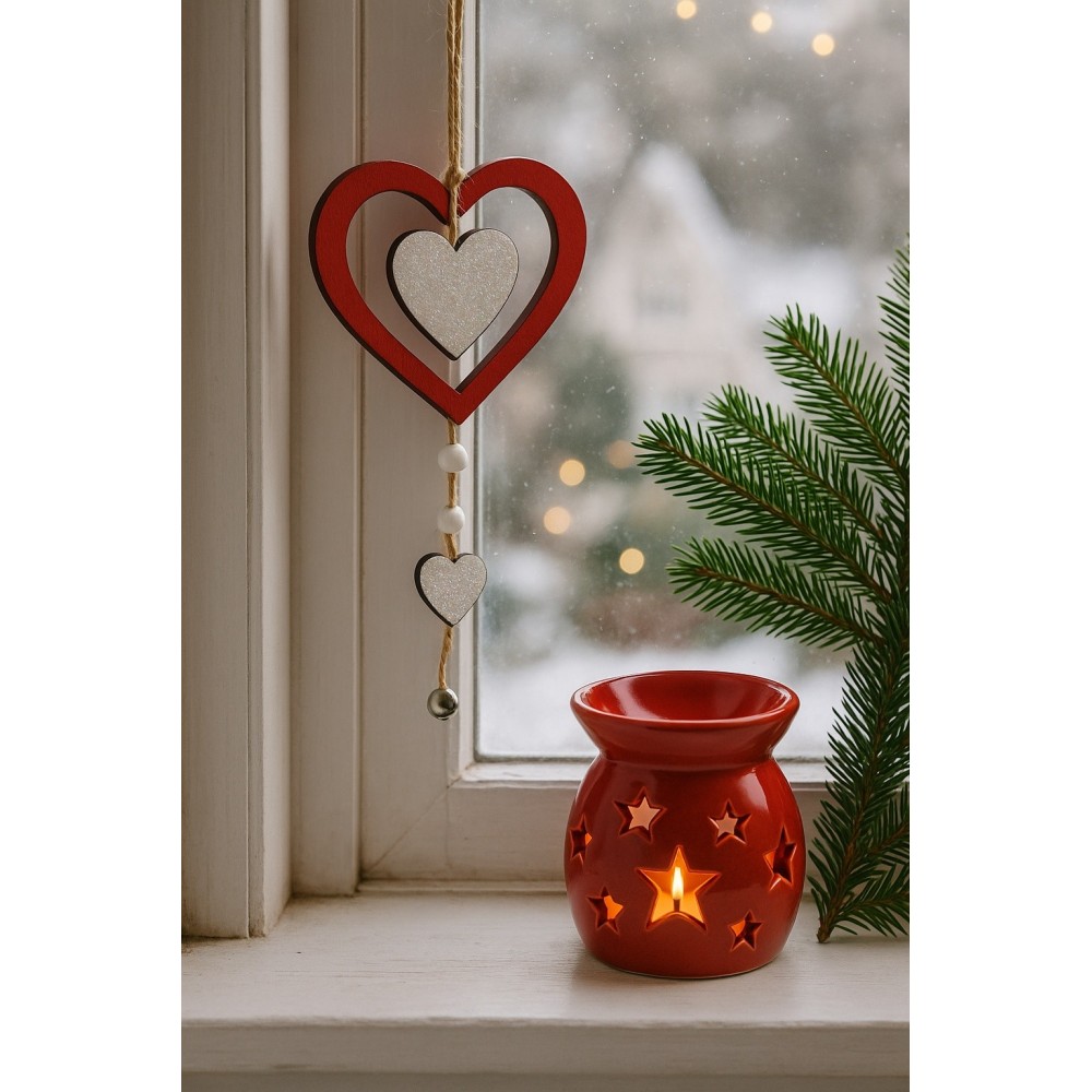 Originální závěsná dekorace ve tvaru srdce je zdobená bílými třpytivými prvky, korálky a rolničkou, která při pohybu jemně cinká. Vynikne na vánočním stromečku, větvičce ve váze i jako ozdoba na dveřích či okně.